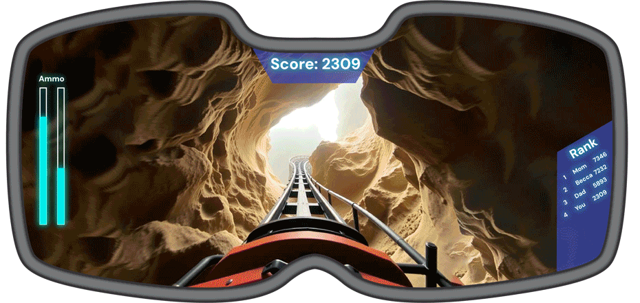 Cyberpunk futuristic first-person shooter vr roller coaster.